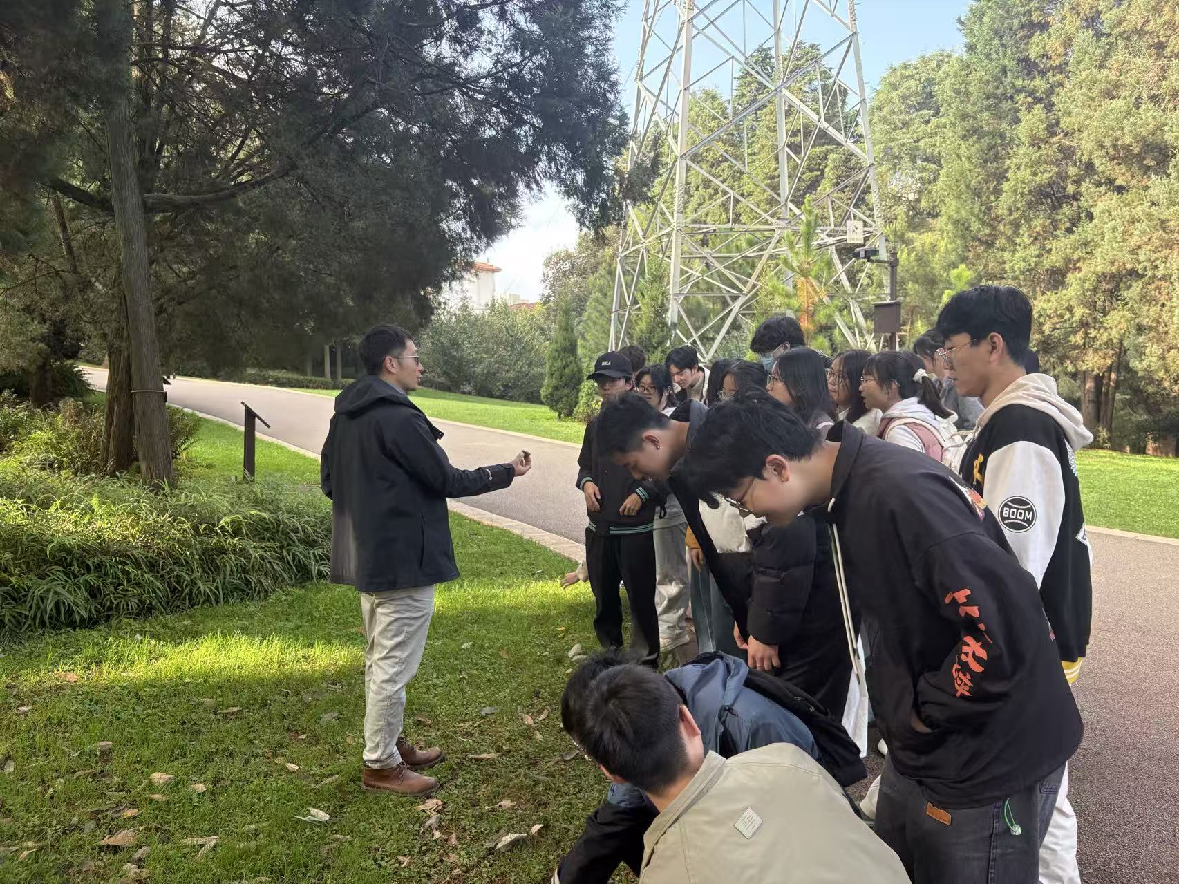 2025年10月25日,我院在“一部六院科教融汇协同育人项目”和“医教融合项目”建设支持下,药学院李晓莉副研究员、肖伟烈研究员和王磊助理研究员带队,组织2023级药学专业本科生前往昆明植物园,开展“识百草,学生药”校外实践活动。学院聘请中国科学院昆明植物研究所高级工程师张挺博士为同学们进行实地授课。