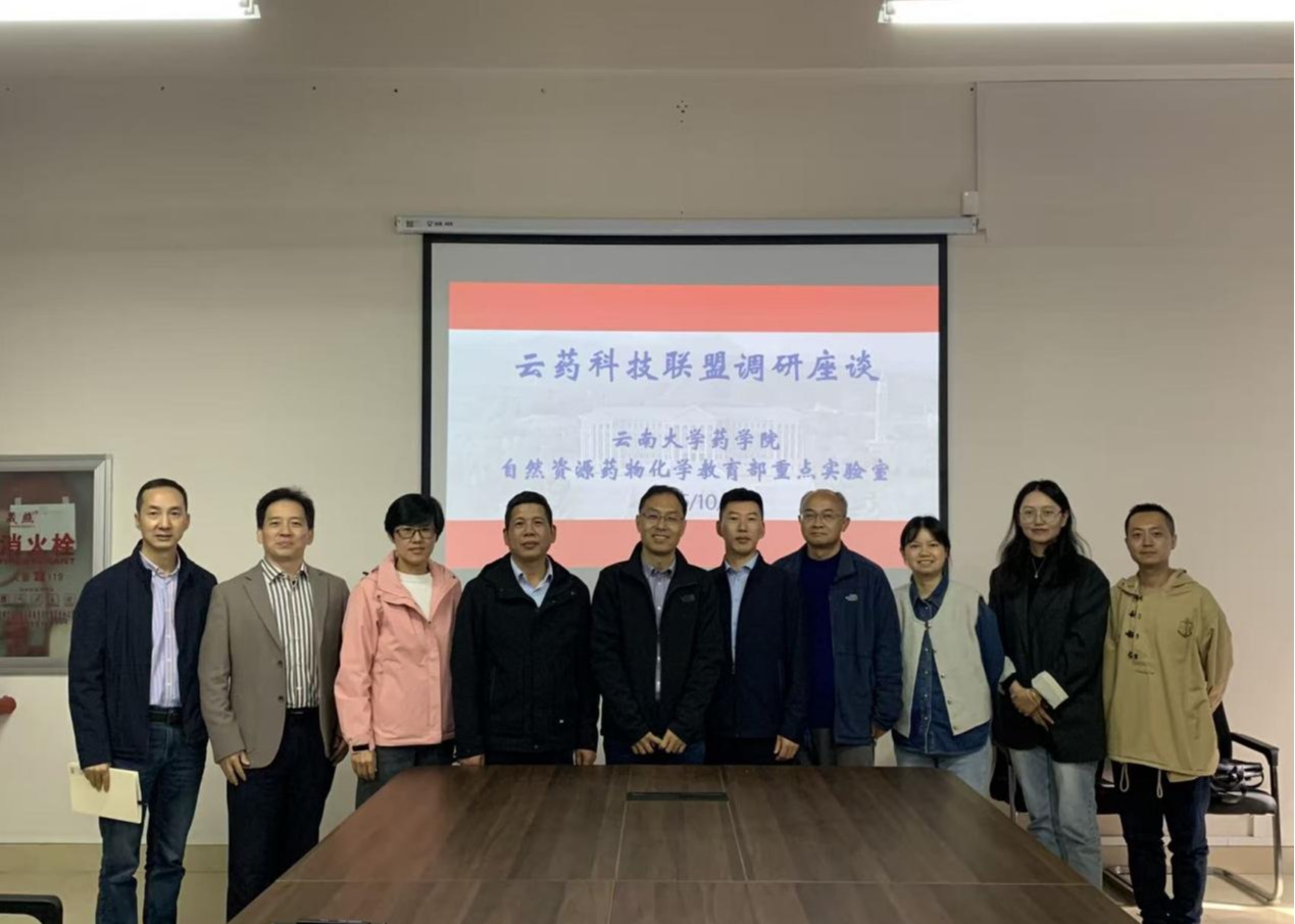 2025年10月28日,云药科技联盟秘书长、云南白药集团中央研究院纪委书记兼天然药物资源研究部总监符德欢一行赴云南大学药学院开展专题调研。药学院院长羊晓东、党总支书记李俊杰及骨干教师代表参与交流,副院长夏成峰主持调研座谈会。