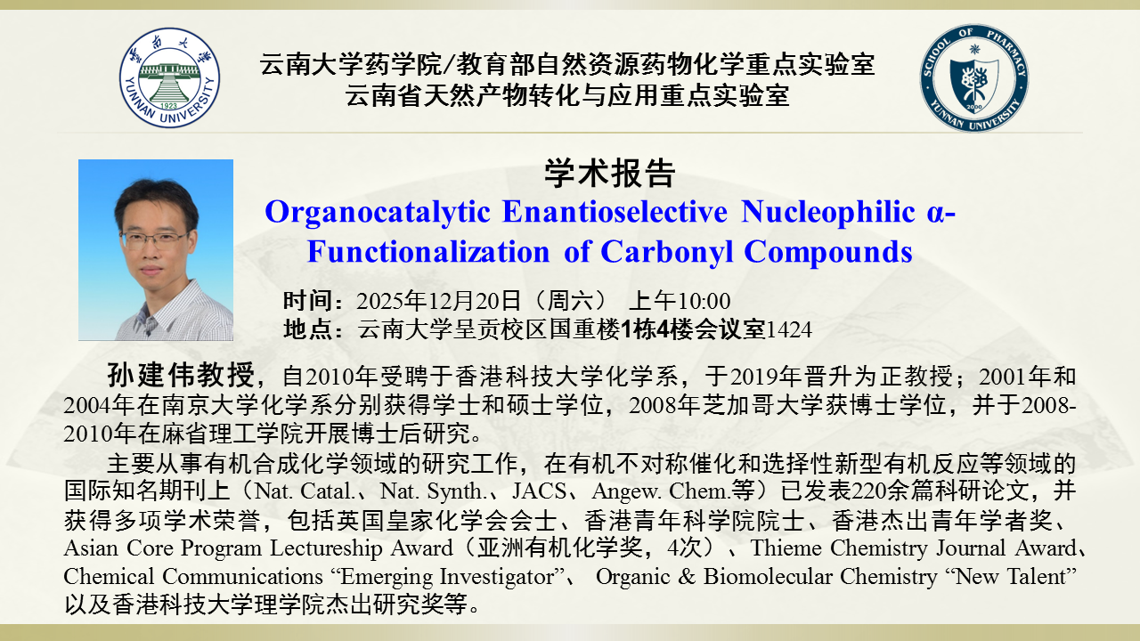 【学术报告】Organocatalytic Enantioselective Nucleophilic α-Functionalization of Carbonyl Compounds